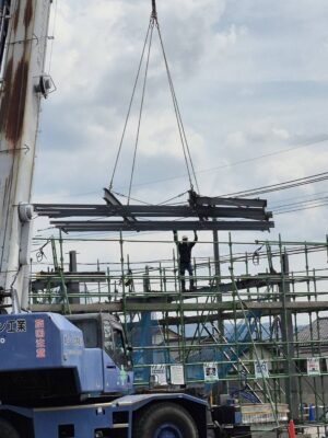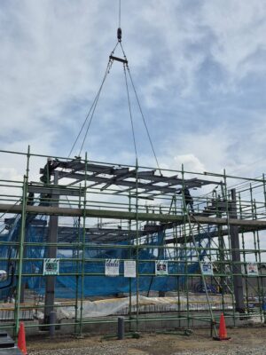 いよいよ鉄骨を所定の位置へと据え付けていきます🔩