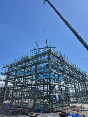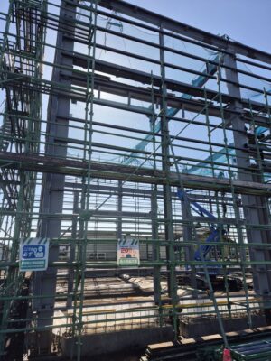 鉄骨が組み上がり、建物の全体像が見えてきました👷‍♂️